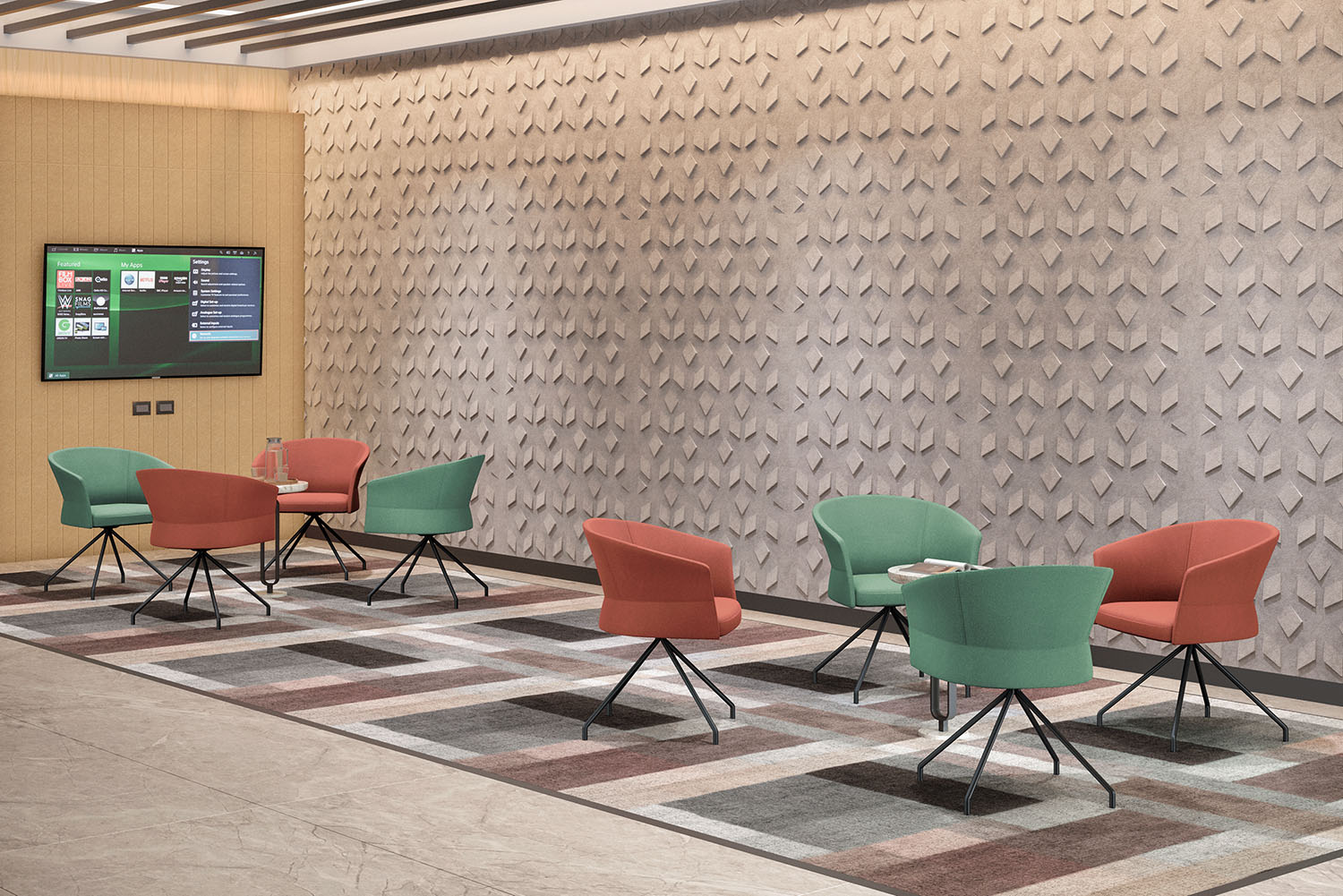 - Variedad de tapices disponibles en gris claro, gris oscuro, salmón y verde permite adaptarla a cualquier ambiente contemporáneo.