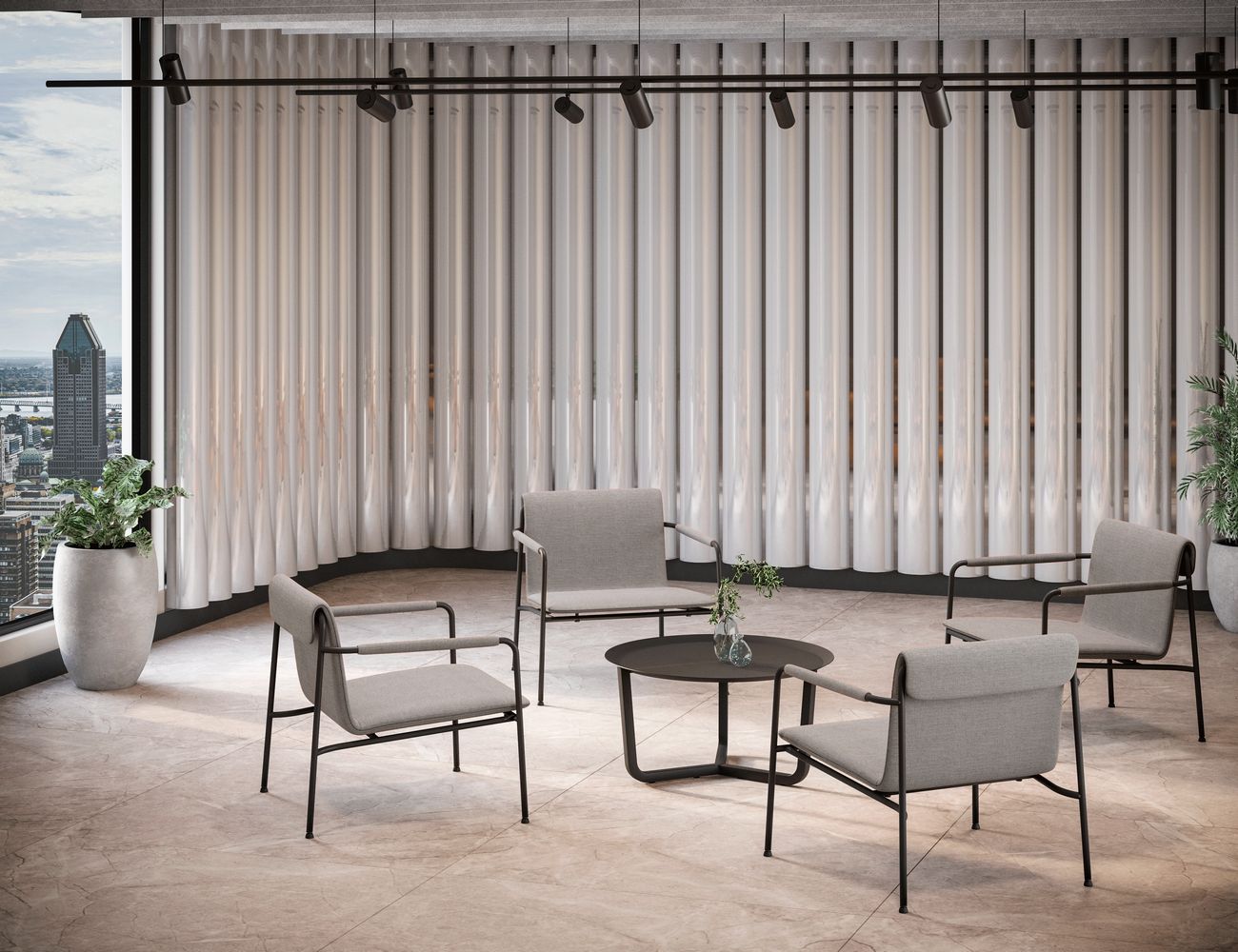 - Disponible en colores gris y camello, es una opción ideal para oficinas, salas de espera o espacios residenciales modernos.